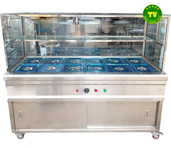 Được gia công bởi inox Thành Vinh với lớp Inox chất lượng, tủ vừa có tác dụng giữ nóng, vừa dùng để trưng bày các loại bánh, thức ăn…