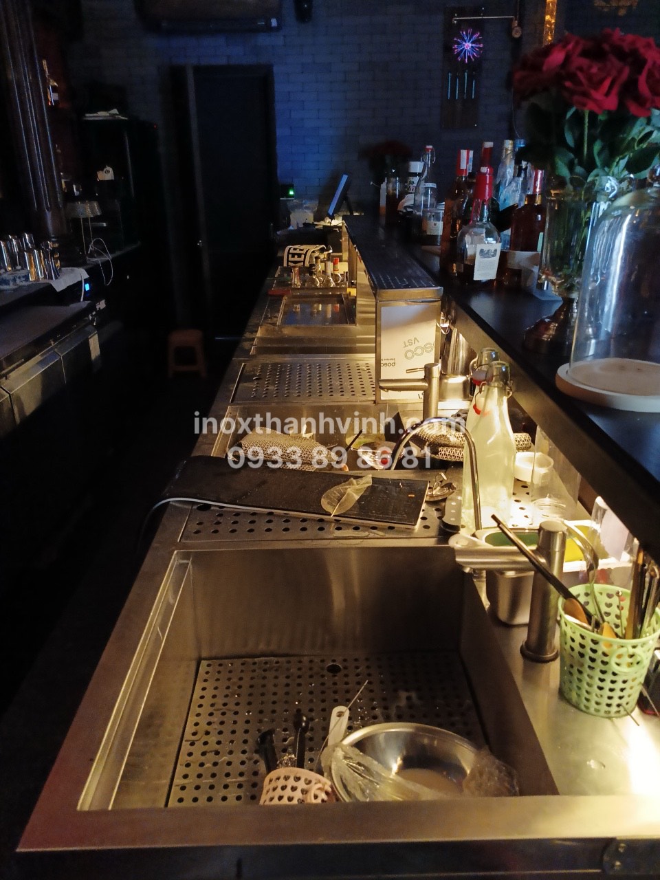 Sau quá trình đo đạc Thành Vinh đã thiết kế quầy bar inox độc đáo và tinh tế. Phản ánh được phong cách và cá tính của House of Merlin. Bất kể là kiểu dáng truyền thống hay hiện đại, chúng tôi sẽ đáp ứng mọi yêu cầu của khách hàng.