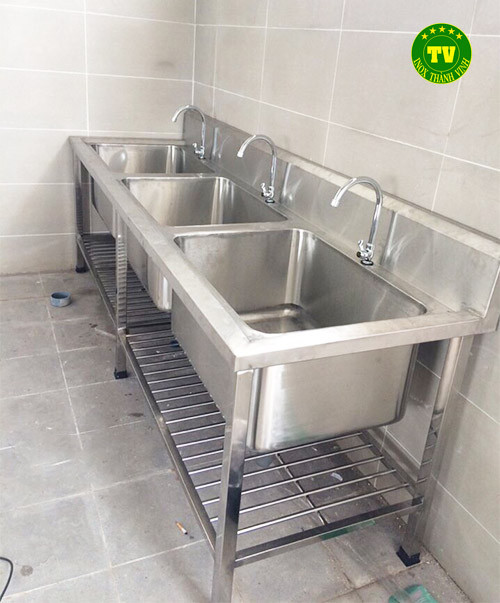 – Khung chân chậu rửa được gia công chắc chắn, với các thanh giằng chân kết nối lại với nhau giúp cho chậu rửa 3 hộc có thể chịu lực tốt.