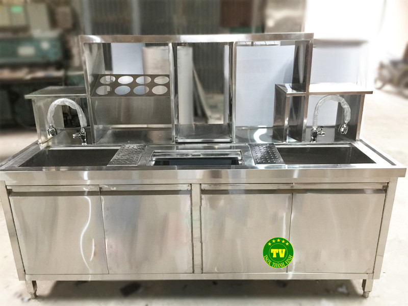 Với các mô hình kinh doanh các quán trà sữa hay các quán coffee, quán Bar thì các hệ quầy trà sữa inox là một hệ thống bàn quầy lớn và dài bao gồm chậu rửa, thùng đá quầy bar pha chế