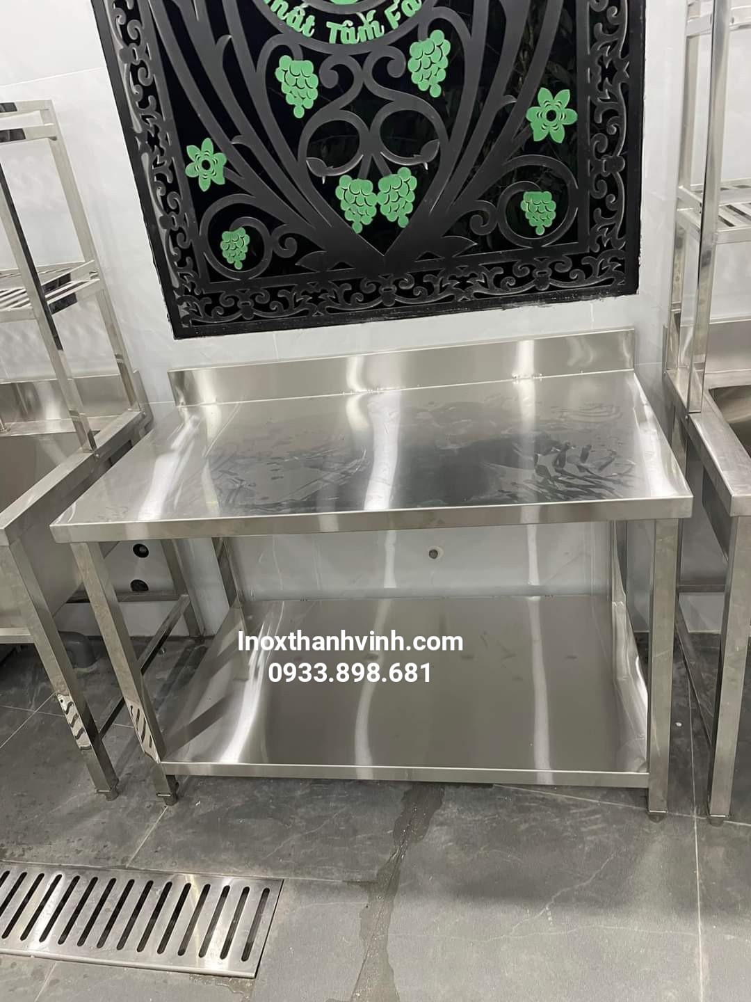 Bàn inox có kệ : Cung cấp diện tích bổ sung để cất giữ đồ và tăng tính tiện ích của bàn.