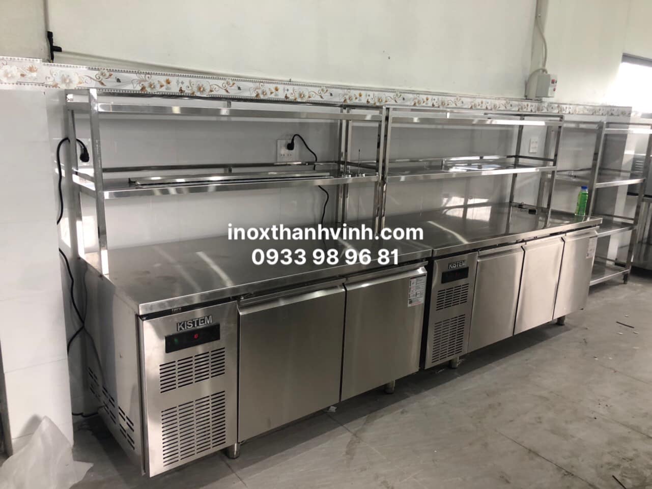 Bên cạnh đó để tiết kiệm diện tích và công năng. Công ty Inox Thành Vinh còn cung cấp bàn đông và bạn lạnh. Ngoại trừ chức năng bảo quản như tủ đông và tủ lành thì mặt tủ có thể dùng làm mặt bàn sơ chế, bàn ra đồ.