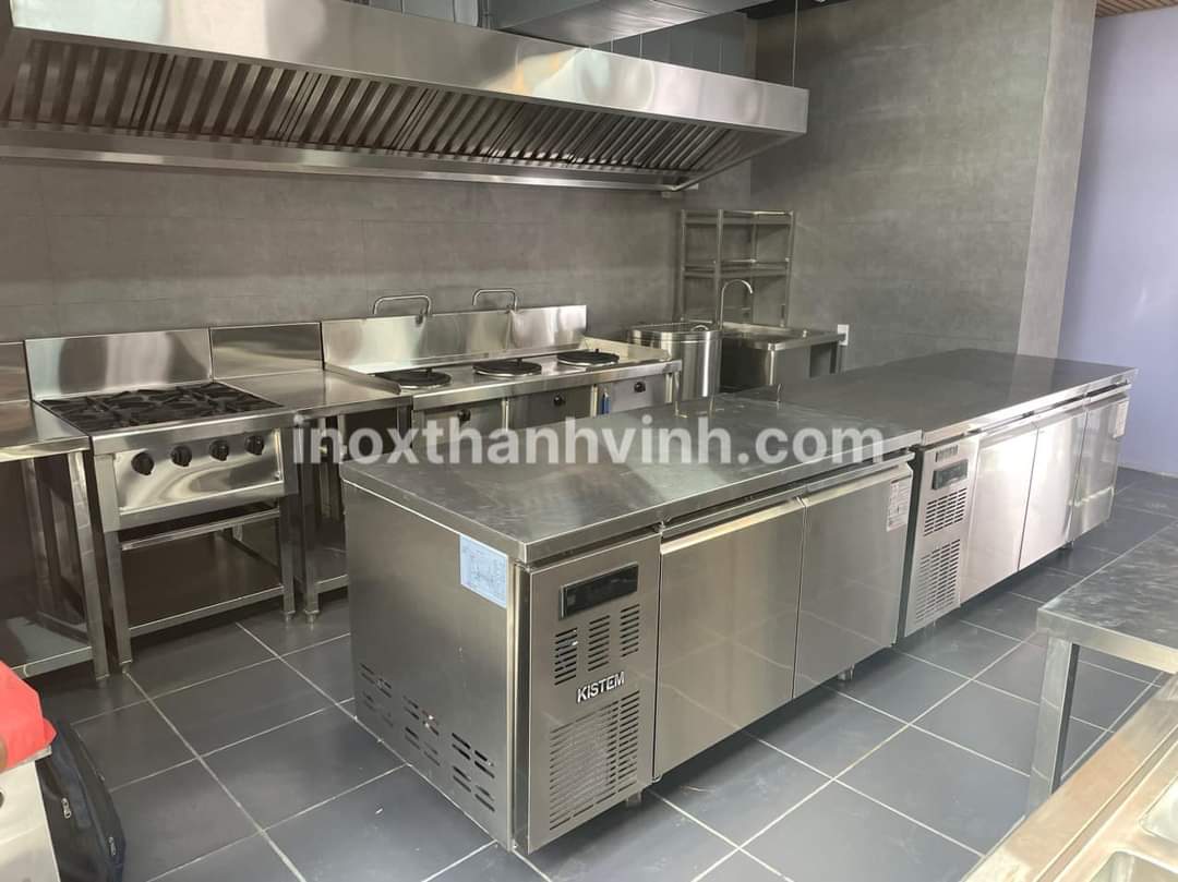 Với không gian bếp được bố trí hợp lý, cùng với hệ thống hút mùi giúp cho không gian bếp được thoáng mát, rỗng rãi. Tạo cảm giác thích thú làm việc cho các đầu bếp. Với các thiết bị được sản xuất hoàn toàn từ Inox 304 sẽ đảm bảo an toàn vệ sinh thực phẩm cho nhà hàng.