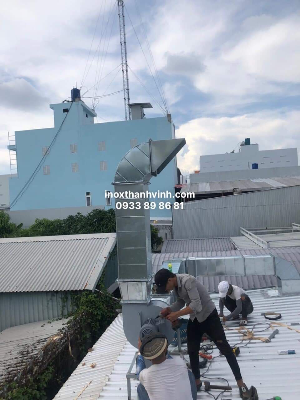 Đội ngũ kĩ thuật đang lắp đặt hệ thống hút mùi công nghiệp