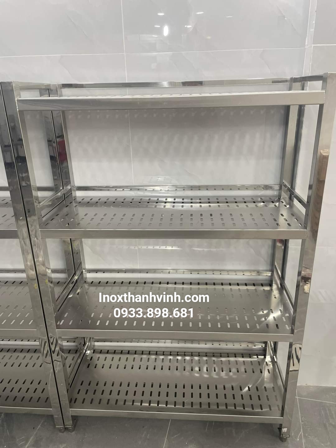 – Kệ inox 4 tầng : Đối với các khu vực nhà bếp tiêu chuẩn thì kệ inox 4 tầng chính là mẫu được sử dụng phổ biến. Bởi thiết kế nhiều tầng có thể tận dụng nhiều không gian để xếp đồ vật lên. Nhưng được thiết phù hợp tầm với thao tác của người dùng.