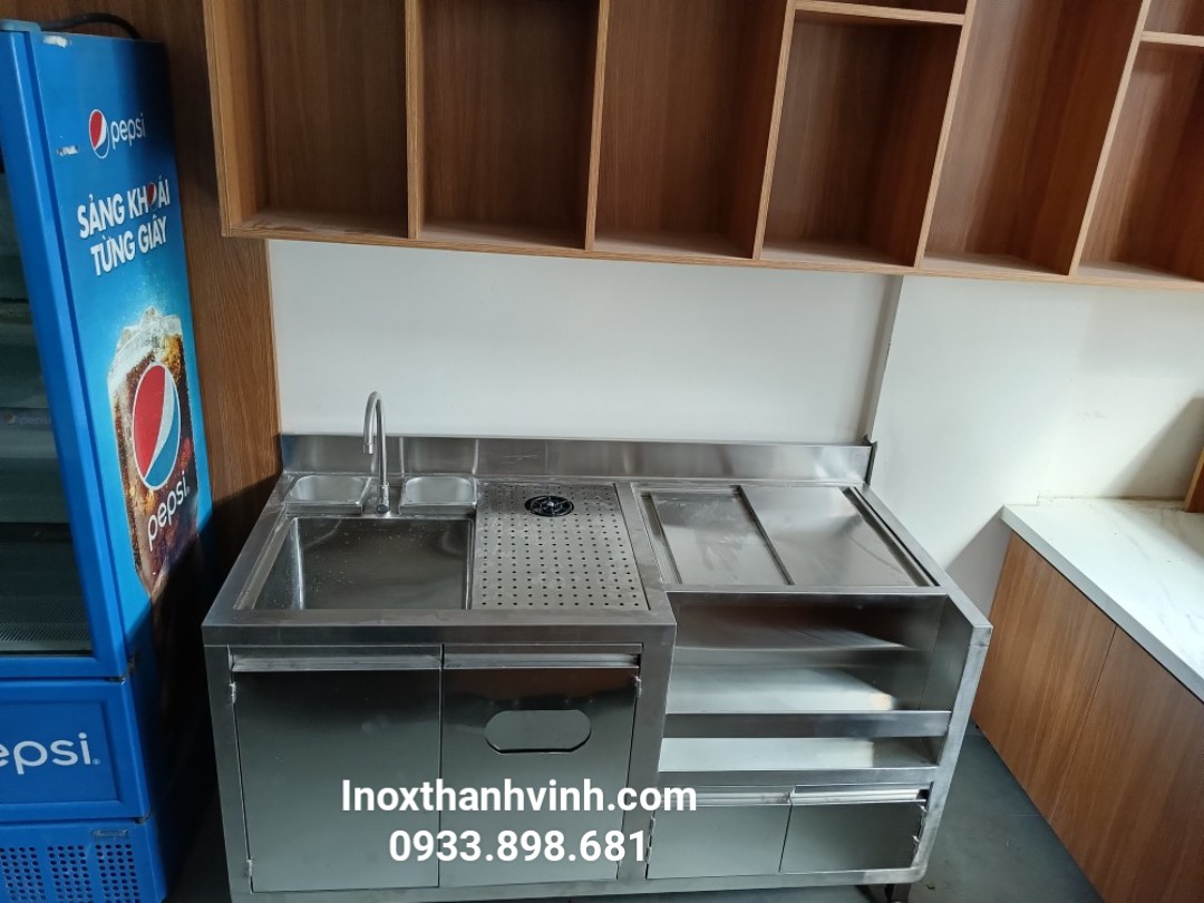 Bồn rửa : Là bộ phận không thể thiếu ở quầy bar pha chế inox. Dùng để rửa các cốc chén, dụng cụ trong quá trình pha chế, đảm bảo vệ sinh khi làm việc. Bồn rửa được thiết kế chuyên biệt dành cho nhu cầu pha chế.