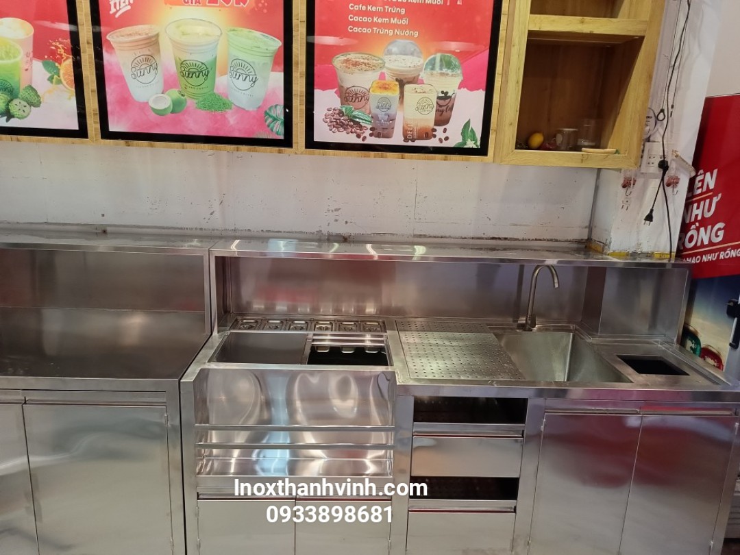 Thêm vào đó, sản phẩm còn phù hợp với các quán trà sữa, cà phê. Tùy thuộc vào không gian, sở thích và kinh phí của từng khách hàng mà đơn vị thi công thiết kế phù hợp. Thực tế, thiết bị pha chế inox có giá thành rẻ hơn so với các chất liệu khác.