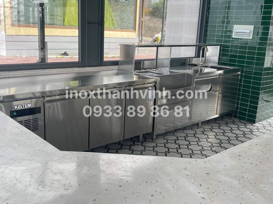 Kích thước : quầy bar có thể tùy chỉnh kích thước phù hợp với không gian, mục đích sử dụng. Đối với quầy bar inox dùng trong nhà hàng hoặc quán bar. Thường có thêm không gian để các nhân viên làm việc và bàn phục vụ khách hàng.