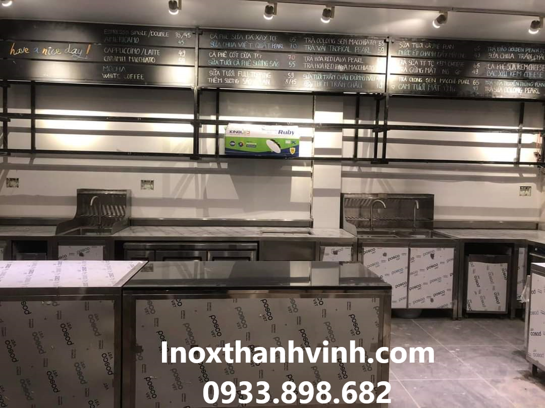 Là thiết bị quầy bar dùng để trưng bày các thức uống và để các nguyên liệu dùng pha chế . Thiết bị được làm bằng inox 304 chất lượng , không ghỉ ,sáng bóng , dễ vệ sinh .