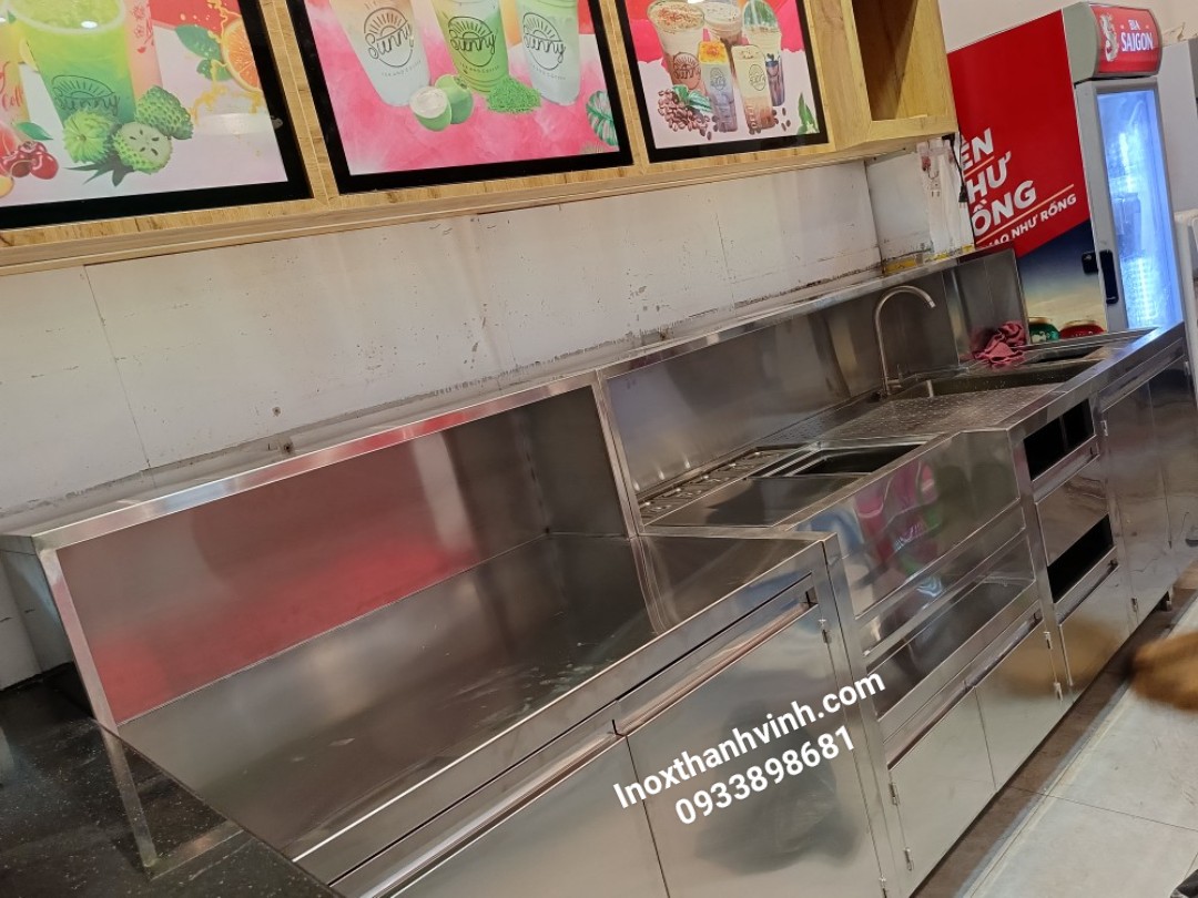 Inox Thành Vinh chuyên thiết kế, gia công, sản xuất quầy pha chế, quầy bar đảm bảo chất lượng. Các mặt hàng của chúng tôi được sản xuất từ xưởng không qua trung gian nên giá cả phải chăng. Kèm theo đó các góc cạnh được mài dũa đảm bảo an toàn cho khách hàng. Còn chần chờ gì nữa mà không gọi cho chúng tôi theo số điện thoại: 0933.898.681 để được tư vẫn miễn phí.