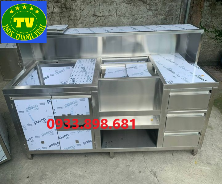 +Quầy pha chế được gia công tỉ mỉ, chất liệu inox nên chịu lực tốt, chắc chắn.