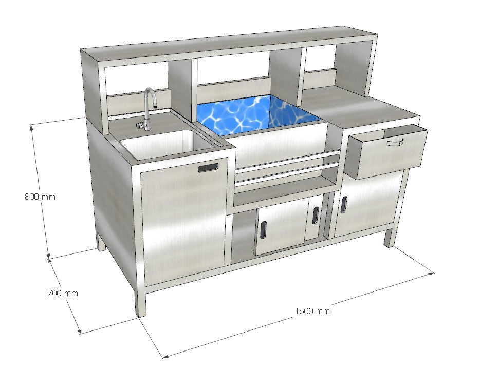 - Chậu rửa inox: Thiết kế nhỏ gọn vừa đủ để các Bartender tráng ly hoặc rửa tay.